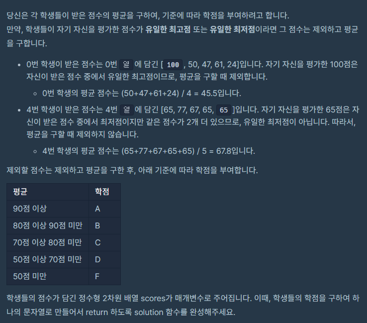 그리고 학생들의 점수의 평균을 구한 뒤 그에 맞는 등급을 반환하면됩니다.