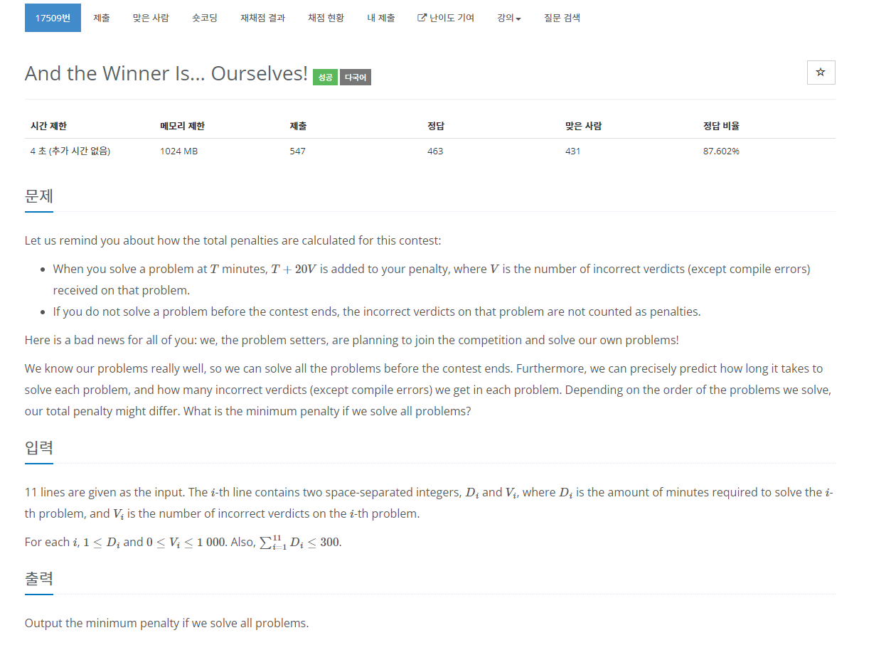 문제 출처 : https://www.acmicpc.net/problem/17509